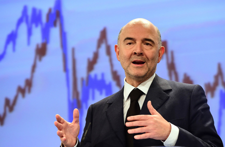 2月5日,在比利時(shí)布魯塞爾的歐盟委員會(huì)總部,歐盟委員會(huì)負(fù)責(zé)經(jīng)濟(jì)和金融事務(wù)的委員皮埃爾·莫斯科維奇發(fā)布對歐元區(qū)經(jīng)濟(jì)情況的最新預(yù)期。