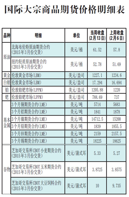 國際大宗商品期貨價格明細(xì)表[2015-2-16]