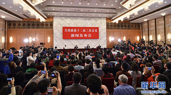 3月2日,全國(guó)政協(xié)十二屆三次會(huì)議新聞發(fā)布會(huì)在北京人民大會(huì)堂舉行,大會(huì)發(fā)言人呂新華介紹會(huì)議有關(guān)情況并回答中外記者提問(wèn)。