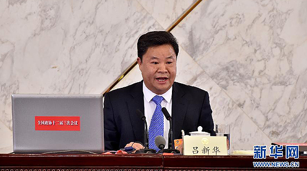3月2日,全國政協(xié)十二屆三次會(huì)議新聞發(fā)布會(huì)在北京人民大會(huì)堂舉行,大會(huì)發(fā)言人呂新華介紹會(huì)議有關(guān)情況并回答中外記者提問。