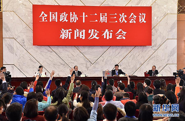 3月2日,全國(guó)政協(xié)十二屆三次會(huì)議新聞發(fā)布會(huì)在北京人民大會(huì)堂舉行,大會(huì)發(fā)言人呂新華介紹會(huì)議有關(guān)情況并回答中外記者提問。