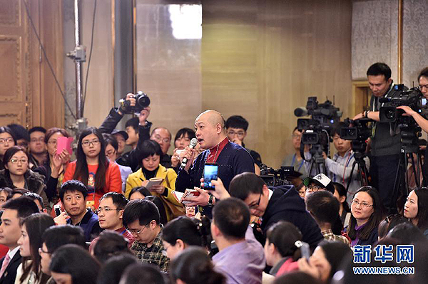 3月2日,全國政協(xié)十二屆三次會(huì)議新聞發(fā)布會(huì)在北京人民大會(huì)堂舉行,大會(huì)發(fā)言人呂新華介紹會(huì)議有關(guān)情況并回答中外記者提問。這是記者在發(fā)布會(huì)上提問。
