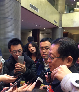 3月2日,《經(jīng)濟(jì)參考報(bào)》記者全天蹲守在鐵道大廈。當(dāng)天赴經(jīng)濟(jì)組報(bào)到的委員不多,大多數(shù)時(shí)間,記者們只能等候在簽到大廳,注視著大廳入口。接近下午5時(shí)左右,眼看天色開(kāi)始發(fā)暗,突然,中國(guó)建設(shè)銀行原監(jiān)事長(zhǎng)謝渡揚(yáng)、中華全國(guó)供銷合作總社理事會(huì)副主任趙顯人及李克穆3位經(jīng)濟(jì)組委員先后出現(xiàn),形成了記者“圍堵”的一個(gè)小高潮。李克穆更是在記者的追問(wèn)下放出重磅消息,稱對(duì)互聯(lián)網(wǎng)金融應(yīng)該實(shí)施審慎監(jiān)管。