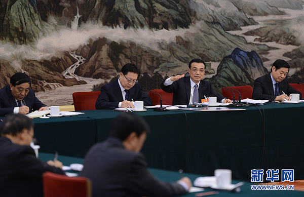 3月8日,中共中央政治局常委、國務(wù)院總理李克強(qiáng)參加十二屆全國人大三次會(huì)議四川代表團(tuán)的審議。 新華社記者 高潔 攝