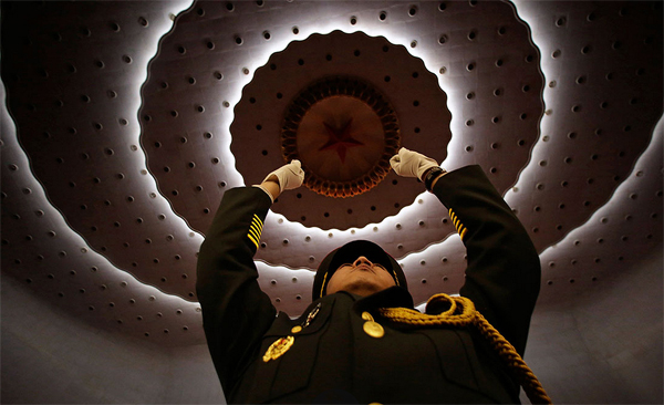 2015年3月5日,北京,十二屆全國人民代表大會第三次會議將在人民大會堂舉行開幕會,軍樂隊指揮進行排練。