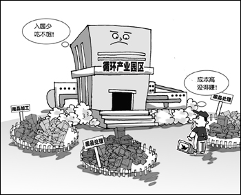 此外,不少入園企業(yè)反映,由于國(guó)內(nèi)回收體系尚不健全,受法律法規(guī)對(duì)廢舊機(jī)電、廢五金、廢塑料等的限制,一些進(jìn)口原料不足,企業(yè)嚴(yán)重“吃不飽”。天津子牙園區(qū)內(nèi)的TCL企業(yè)設(shè)計(jì)年處理廢家電240萬臺(tái),2010年只處理了約100萬臺(tái)。由于廢家電是國(guó)家法律禁止進(jìn)口的類別,目前他們只能依靠國(guó)內(nèi)回收的少量廢家電為加工原料。天津一家木塑制品企業(yè),12條生產(chǎn)線平時(shí)也只能開幾條,生產(chǎn)能力白白浪費(fèi)。
