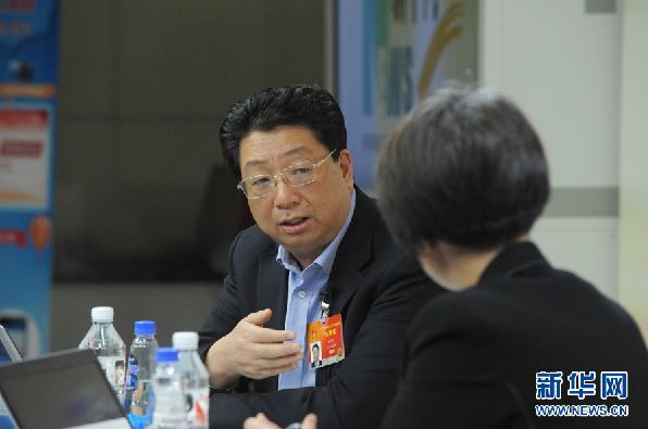 2015年3月11日,全國人大代表、浙江物產(chǎn)集團(tuán)董事長王挺革做客新華會(huì)客廳。圖為王挺革與主持人交談。新華網(wǎng) 李江