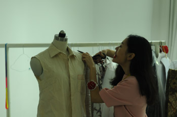 | 石芮子在工作室設(shè)計(jì)新款服飾 資料照片 |