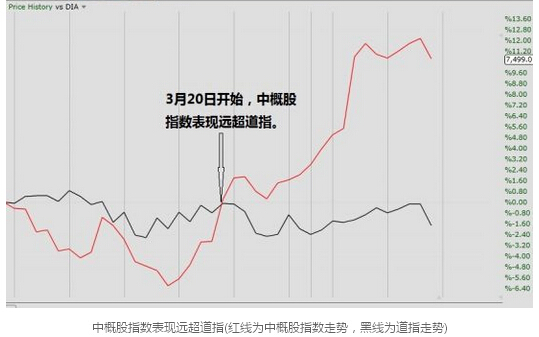 周五下午,中國(guó)證監(jiān)會(huì)規(guī)范兩融鼓勵(lì)融券的消息傳遍全球市場(chǎng),眼紅于A股火爆的海外資金借機(jī)渲染市場(chǎng)的恐慌情緒,中概股早盤跌幅一度超過(guò)2%。但是,在市場(chǎng)充分消化了此消息后,華爾街資金又迅速回流中概股;收盤時(shí),中概股跌幅收窄至1.3%,道指則下跌1.5%。海外資金所幻想的暴跌成為了笑話。