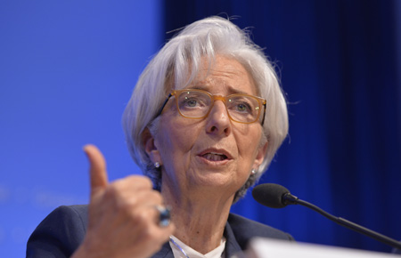 國際貨幣基金組織(IMF)決策機構(gòu)——國際貨幣與金融委員會18日舉行第31界部長級會議,并發(fā)布公告稱,全球經(jīng)濟復(fù)蘇“溫和”但“不均”,敦促各國采取措施促進全球經(jīng)濟更加強勁、可持續(xù)和平衡增長。(詳見今日四版) 圖為國際貨幣基金組織總裁拉加德當(dāng)日在美國首都華盛頓的新聞發(fā)布會上講話。