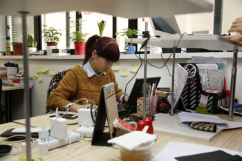 楊柳在辦公室里工作。記者 丁汀