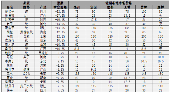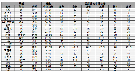 3. 中藥材品種指數(shù)、價格漲跌分析