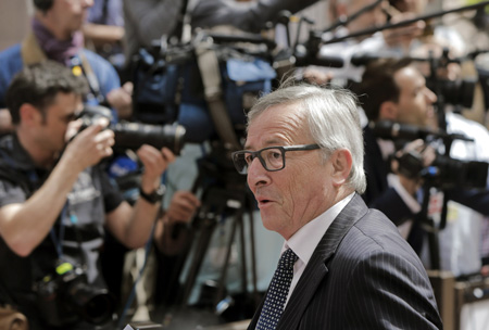 5月11日,歐盟委員會主席容克抵達(dá)比利時首都布魯塞爾的歐盟總部,出席歐元區(qū)財長會議。