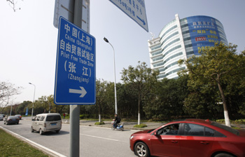 今年4月,國務(wù)院分別印發(fā)通知,批準《中國(廣東)自由貿(mào)易試驗區(qū)總體方案》、《中國(天津)自由貿(mào)易試驗區(qū)總體方案》、《中國(福建)自由貿(mào)易試驗區(qū)總體方案》和《進一步深化中國(上海)自由貿(mào)易試驗區(qū)改革開放方案》。圖為位于上海張江張東路上的中國(上海)自由貿(mào)易試驗區(qū)(張江)的路標指示牌。