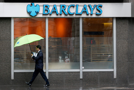 美國和英國的監(jiān)管部門20日表示,已和六家大型跨國銀行達成總計約58億美元的和解協(xié)議,以了結(jié)其操縱外匯市場的指控。這六家銀行是巴克萊、摩根大通、花旗、蘇格蘭皇家銀行、瑞銀和美國銀行。 圖為一名男子走過英國倫敦市中心的一家巴克萊銀行。