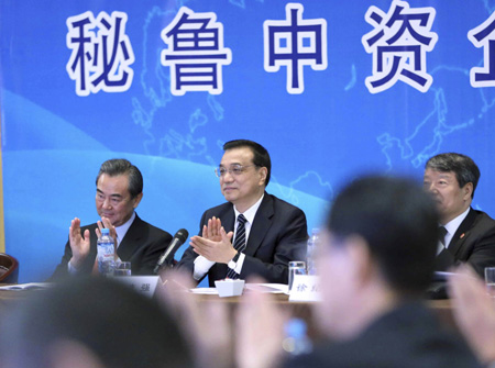 當(dāng)?shù)貢r間5月23日上午,國務(wù)院總理李克強(qiáng)在利馬主持秘魯中資企業(yè)座談會。李克強(qiáng)對在秘中資企業(yè)提出三點希望:一是以產(chǎn)能合作推動中秘合作轉(zhuǎn)型升級。二是履行好企業(yè)社會責(zé)任。三是加強(qiáng)協(xié)調(diào)配合,抱團(tuán)出海。 這是李克強(qiáng)通過遠(yuǎn)程視頻連線慰問中方員工,同他們互動交流。