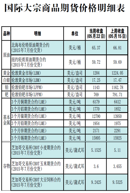 國際大宗商品期貨價格明細(xì)表[2015-5-25]