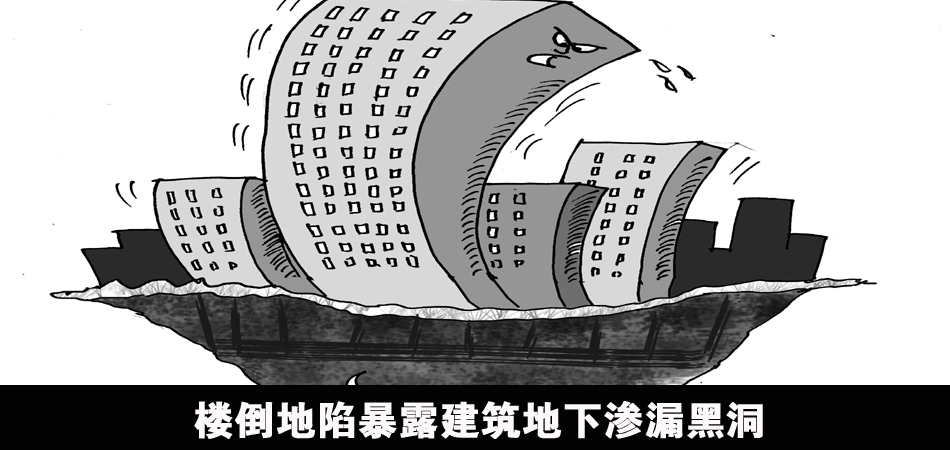 樓倒地陷暴露地下滲漏黑洞