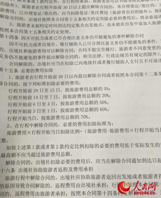 圖為同程網(wǎng)提供的團隊出境旅游合同。