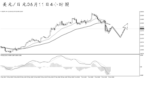 ▲美元兌日元本周中發(fā)生暴跌行情。從日線圖上看,K線連續(xù)收陰,但整體的漲勢仍然沒有遭遇破壞,均線系統(tǒng)的依托位在121.30一線。4小時圖上的道氏低點支撐123.75被強力跌破,MACD進入到空頭動能充盈的階段。短線主趨勢已轉(zhuǎn)為向下,后市面臨更深程度的下調(diào)。但由于日元中長線的疲軟,仍需警惕匯價隨時回歸漲勢的風(fēng)險。
