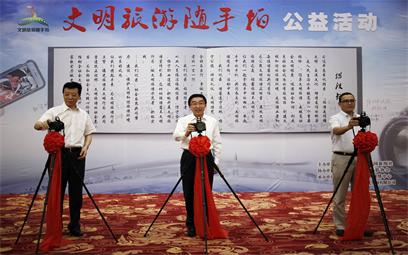 啟動(dòng)儀式上,主辦方發(fā)出了“文明旅游隨手拍”公益活動(dòng)倡議,號(hào)召全社會(huì)攜起手來,為文明旅游行為點(diǎn)贊,曝光旅游不文明行為,共同營造扶正祛邪、文明旅游的社會(huì)氛圍,為弘揚(yáng)社會(huì)主義核心價(jià)值觀,推動(dòng)全社會(huì)文明程度提升,增強(qiáng)國家軟實(shí)力做出貢獻(xiàn)。旅游企業(yè)代表,領(lǐng)隊(duì)、導(dǎo)游、游客代表,以及媒體代表共同簽署倡議書。