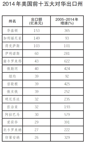 報(bào)告稱(chēng),自2005年以來(lái),美國(guó)42個(gè)州對(duì)中國(guó)的出口增長(zhǎng)率至少達(dá)到三位數(shù),同期有五個(gè)州對(duì)中國(guó)的出口增長(zhǎng)率超過(guò)500%。