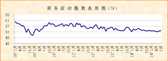 中國物流與采購聯(lián)合會、國家統(tǒng)計局服務業(yè)調查中心發(fā)布的2015年7月份中國非制造業(yè)商務活動指數(shù)連續(xù)兩個月環(huán)比上升,達到53.9%,環(huán)比上升0.1個百分點。市場活動的連續(xù)回升,反映非制造業(yè)運行的穩(wěn)定性有所增強。從具體指數(shù)看,有利于經(jīng)濟繼續(xù)平穩(wěn)向好的積極因素也有所釋放。