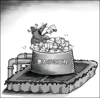 除了惠農(nóng)示范工程,近年來(lái)國(guó)家還推出了糧食補(bǔ)貼、農(nóng)機(jī)補(bǔ)貼、病害豬無(wú)害化處理專項(xiàng)資金、扶貧培訓(xùn)專項(xiàng)資金、電影下鄉(xiāng)專項(xiàng)資金等專項(xiàng)補(bǔ)貼或資金。原本為保障和改善民生的惠民政策,在執(zhí)行過(guò)程中,卻被一些腐敗分子鉆了空子,惠民資金和補(bǔ)貼被虛報(bào)冒領(lǐng)、侵吞挪用的現(xiàn)象屢見(jiàn)不鮮。