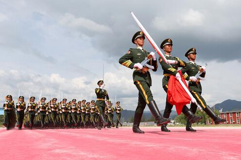 該護(hù)衛(wèi)方隊承擔(dān)紀(jì)念大會升旗儀式的護(hù)衛(wèi)任務(wù),由200人組成。其中護(hù)旗方陣196人,升旗組4人,統(tǒng)一著新式武警升降旗禮服,穿馬靴。護(hù)衛(wèi)方隊官兵平均身高1.85米,平均年齡22歲。據(jù)了解,該方隊從今年6月份開始集中訓(xùn)練,每天訓(xùn)練十個半小時。