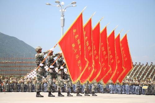 為鮮明地表達(dá)紀(jì)念抗戰(zhàn)勝利這個(gè)主題,閱兵領(lǐng)導(dǎo)小組和聯(lián)合指揮部研究決定,由受閱部隊(duì)擎舉抗戰(zhàn)部隊(duì)番號(hào)旗和榮譽(yù)旗在天安門(mén)前接受檢閱。盧少澤介紹,70面旗幟,寓意紀(jì)念中國(guó)人民抗日戰(zhàn)爭(zhēng)暨世界反法西斯戰(zhàn)爭(zhēng)勝利70周年。其中,10面為抗戰(zhàn)部隊(duì)番號(hào)旗,60面為抗戰(zhàn)部隊(duì)榮譽(yù)旗;每個(gè)英模部隊(duì)方隊(duì)前,1面為番號(hào)旗,6面為榮譽(yù)旗。