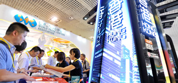 ▲9月8日,參觀者在2015年廈門國際投資貿(mào)易洽談會(huì)展館香港展位前咨詢有關(guān)香港投資情況?!⌒氯A社記者 林善傳/攝 |