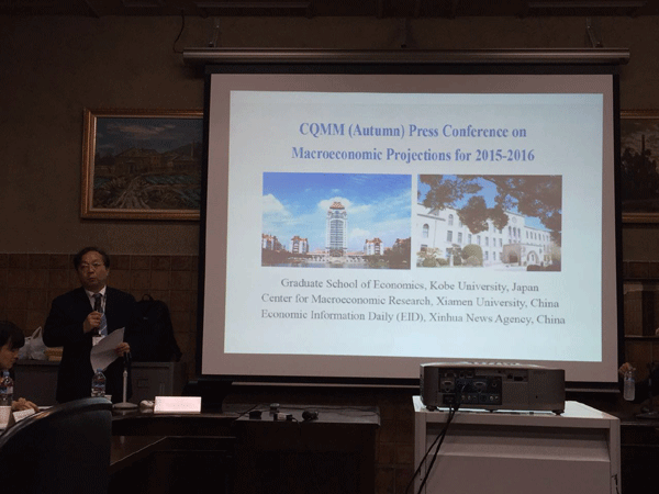 廈門大學(xué)、日本神戶大學(xué)與新華社《經(jīng)濟(jì)參考報(bào)》9日在神戶聯(lián)合舉行“中國宏觀經(jīng)濟(jì)國際研討會暨‘中國季度宏觀經(jīng)濟(jì)模型(CQMM)2015年秋季預(yù)測發(fā)布會’”。廈門大學(xué)宏觀經(jīng)濟(jì)研究中心課題組在發(fā)布會上指出,2015年中國經(jīng)濟(jì)雖然面臨下行壓力,但經(jīng)濟(jì)增長率有望實(shí)現(xiàn)7.0%的政策目標(biāo),預(yù)計(jì)全年GDP增速為7.10%。比2014年小幅回落0.2個(gè)百分點(diǎn)。CPI預(yù)計(jì)上漲1.62%,通貨膨脹率將維持低位穩(wěn)定。
