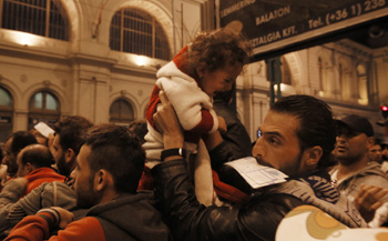 9月8日,中東地區(qū)難民在布達佩斯克列蒂火車站等待前往維也納的火車?!⌒氯A社/俄新 |