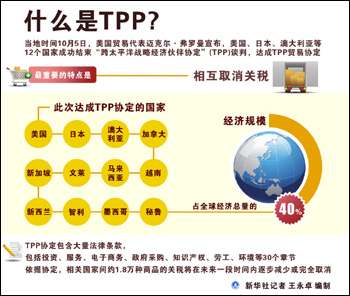 當(dāng)?shù)貢r(shí)間10月5日,美國(guó)等12國(guó)經(jīng)貿(mào)部長(zhǎng)發(fā)表聯(lián)合聲明,宣布?xì)v時(shí)5年多的“跨太平洋戰(zhàn)略經(jīng)濟(jì)伙伴協(xié)定”(TPP,簡(jiǎn)稱《協(xié)定》)談判結(jié)束。中國(guó)商務(wù)部新聞發(fā)言人6日表示,中方對(duì)符合世界貿(mào)易組織規(guī)則、有助于促進(jìn)亞太區(qū)域經(jīng)濟(jì)一體化的制度建設(shè)均持開放態(tài)度。