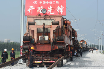 津保鐵路加緊施工,年內(nèi)將通。 新華社記者 李曉果/攝
