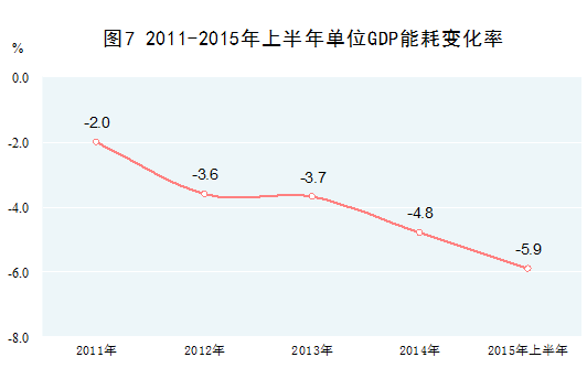 節(jié)能降耗成效顯著。加強(qiáng)工業(yè)、交通、建筑等重點(diǎn)領(lǐng)域節(jié)能,積極發(fā)展綠色低碳產(chǎn)業(yè),能源消費(fèi)結(jié)構(gòu)發(fā)生深刻變化,單位產(chǎn)出能耗水平大幅下降。2014年,水電、風(fēng)電、核電、天然氣等清潔能源消費(fèi)量占能源消費(fèi)總量的比重為16.9%,比2010年提高3.5個(gè)百分點(diǎn)。2011-2014年,單位國(guó)內(nèi)生產(chǎn)總值能耗累計(jì)下降13.4%,2015年上半年同比下降5.9%。