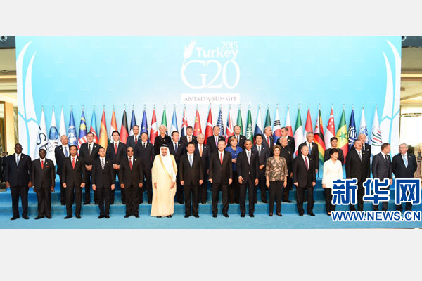 ??? 15日,二十國集團領導人第十次峰會在土耳其安塔利亞舉行。國家主席習近平出席并發(fā)表題為《創(chuàng)新增長路徑 共享發(fā)展成果》的重要講話,強調二十國集團要加強宏觀經(jīng)濟政策溝通和協(xié)調,推動改革創(chuàng)新,構建開放型世界經(jīng)濟,落實2030年可持續(xù)發(fā)展議程。