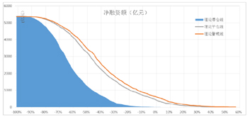 在靜態(tài)假設(資金拆借方不作為)的前提下,滬深300指數(shù)下跌0%,觸及預警線和平倉線的市值占比分別為6.32%和2.41%,其平倉的壓力市值約為656億元;滬深300下跌10%,觸及預警線和平倉線的市值占比分別為12.23%和4.89%,其平倉的壓力市值約為1331億元;滬深300下跌20%,觸及預警線和平倉線的市值占比分別為21.13%和11.06%,其平倉的壓力市值約為3012億元。上述三種情景假設下的平倉規(guī)模均對市場造成了一定的向下壓力。數(shù)據(jù)顯示,目前理論平倉市值占總市值20%以上的上市公司約有20家。其中,華數(shù)傳媒、龍宇燃油理論平倉市值占比分別高達50.26%和50.00%,錦龍股份、中超電纜、大名城、蘭石重裝和金盾股份理論平倉市值占比也均在30%以上。