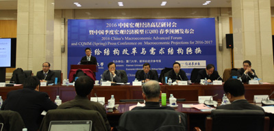 2月25日,廈門大學(xué)與新華社經(jīng)濟(jì)參考報(bào)社在京聯(lián)合舉行“中國宏觀經(jīng)濟(jì)高層研討會(huì)暨中國季度宏觀經(jīng)濟(jì)模型(CQMM)2016春季預(yù)測(cè)發(fā)布會(huì)”。? 本報(bào)記者 王皓然/攝?