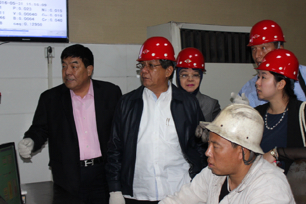 2016年5月31日印度尼西亞中蘇拉威西省長隆基江貢拉,應(yīng)河北畢氏集團畢經(jīng)安董事長邀請到河北唐山市經(jīng)安鋼鐵公司、國義鋼鐵公司考察。