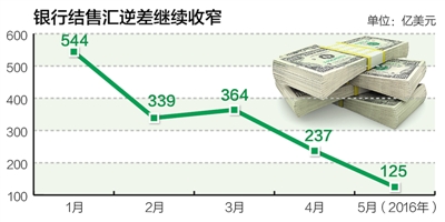 國家外匯管理局新聞發(fā)言人表示,5月份我國外匯供求狀況進一步趨向平衡。首先,銀行結(jié)售匯逆差繼續(xù)收窄,5月份,銀行結(jié)售匯逆差為125億美元,環(huán)比下降47%,日均逆差連續(xù)5個月下降。1月至4月,銀行結(jié)售匯逆差分別為544億、339億、364億和237億美元。其次,非銀行部門涉外收付款逆差擴大但外匯收付由逆轉(zhuǎn)順。5月份,非銀行部門涉外收付款逆差235億美元,前4個月分別為558億、305億、261億和89億美元。其中,5月份非銀行部門涉外外匯收付小幅順差2億美元,1月至4月分別為逆差201億、105億、59億和20億美元。