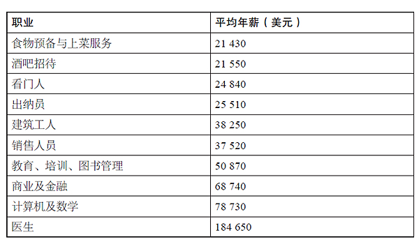 總的來(lái)看,你應(yīng)當(dāng)選擇一位能夠保證你的家庭收入超越貧苦線且享有一些余裕的伴侶。這個(gè)標(biāo)準(zhǔn)并不高,因?yàn)樵诳蛇x的伴侶中,有80% 的人都處于貧困線之上。以家庭收入為單位,也就是說,如果你有工作的話,那么你與伴侶兩人的工資總和才能說明問題。從下圖的職業(yè)收入對(duì)照表中我們可以看出,如果你是商業(yè)及金融行業(yè)的從業(yè)者,那么無(wú)論你對(duì)象的職業(yè)屬于下列哪個(gè)行業(yè),你們的家庭收入都能超過75 000 美元。