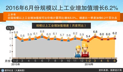 受穩(wěn)增長政策、企業(yè)效益改善等因素影響,今年以來工業(yè)生產(chǎn)改變了過去增速持續(xù)放緩態(tài)勢,出現(xiàn)一定企穩(wěn)跡象。國家統(tǒng)計局數(shù)據(jù)顯示,上半年,全國規(guī)模以上工業(yè)增加值同比增長6%,增速與上年基本持平。從近四個季度增長情況看,2015年三、四季度工業(yè)生產(chǎn)增速均為5.9%,今年一、二季度分別增長5.8%和6.1%,連續(xù)四個季度保持在6%左右的區(qū)間內(nèi)小幅波動,終止了工業(yè)增速連續(xù)下滑的趨勢。