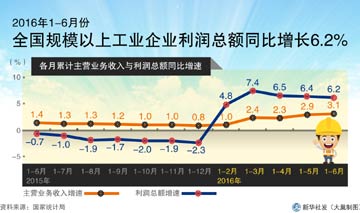 國家統(tǒng)計(jì)局7月27日發(fā)布的工業(yè)企業(yè)財(cái)務(wù)數(shù)據(jù)顯示,1至6月份,規(guī)模以上工業(yè)企業(yè)利潤(rùn)同比增長(zhǎng)6.2%,增速比1至5月份回落0.2個(gè)百分點(diǎn),主要受3月份較高增長(zhǎng)的影響。其中,6月份利潤(rùn)同比增長(zhǎng)5.1%,增速比5月份加快1.4個(gè)百分點(diǎn)。專家表示,6月份工業(yè)企業(yè)利潤(rùn)增長(zhǎng)加快,主要受工業(yè)生產(chǎn)和銷售增長(zhǎng)有所加快,產(chǎn)品價(jià)格降幅繼續(xù)收窄影響,工業(yè)企業(yè)降本減負(fù)效果顯現(xiàn),庫存壓力繼續(xù)減緩。但是,制約企業(yè)效益向好的不利因素仍然存在,目前的利潤(rùn)增長(zhǎng)不夠均衡,新增利潤(rùn)集中于少數(shù)行業(yè),未來整體工業(yè)生產(chǎn)難言樂觀。