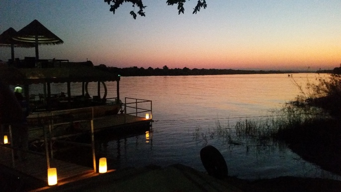 正是黃昏時(shí)分,紅心鴨蛋一般的太陽(yáng)在贊比西河的盡頭慢慢下沉,漫天云蒸霞蔚,夕陽(yáng)余暉在每個(gè)人的臉上鍍上金色,空中不知名的水鳥(niǎo)翻飛,船上熱情歡快的非洲鼓點(diǎn)響起來(lái)了,游客們無(wú)論何種膚色,都不由地被這音樂(lè)這場(chǎng)景感染,情不自禁地隨著樂(lè)聲一起舞動(dòng)起來(lái)。