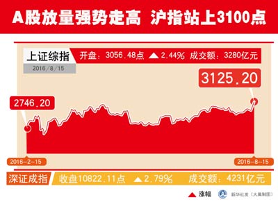 8月15日,上證綜指大漲2.44%,收報3125.2點,創(chuàng)出2638點以來7個月的反彈新高。深成指大漲2.79%,創(chuàng)業(yè)板指勁升3.27%。兩市成交額超7500億元,創(chuàng)三周新高。這輪大漲的背后,是2016年以來金融監(jiān)管政策趨緊、資產(chǎn)荒愈演愈烈,金融資本、產(chǎn)業(yè)資本不斷在A股市場攻城略地的現(xiàn)實。