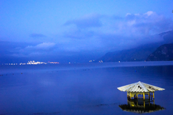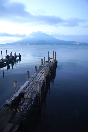 清晨,當站在阿蒂特蘭湖前面,仿佛置身于自然與人類相互融合的仙境一般。近處,湖泊升起的水霧彌散開來。遠處,三座火山若隱若現(xiàn)地出現(xiàn)在云霧繚繞之中。而身邊,是瑪雅村落的人們?nèi)齼蓛稍谒呄搭^洗漱,開啟一天的生活。太陽慢慢升起,陽光普照大地,云霧漸漸散去,四周翠綠的山林和熱鬧的村落倒映在碧藍的湖中,湖、山、人交融得相得益彰。