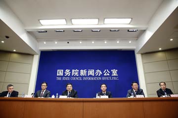 ?10月10日,國務(wù)院新聞辦公室舉行新聞發(fā)布會,請發(fā)展改革委副主任連維良、財政部部長助理戴柏華、人民銀行副行長范一飛、國務(wù)院國有資產(chǎn)監(jiān)督管理委員會副主任孟建民、銀監(jiān)會副主席王兆星介紹積極穩(wěn)妥降低企業(yè)杠桿率有關(guān)政策情況,并答記者問。新華社記者 沈伯韓/攝 |