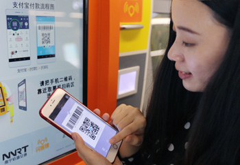 ??? 一位市民通過支付寶購買南寧地鐵票。資料照片 |
