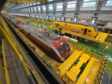位于株洲市的中國中車株洲電力機車有限公司核心生產(chǎn)區(qū)。新華社記者 龍弘濤/攝? |